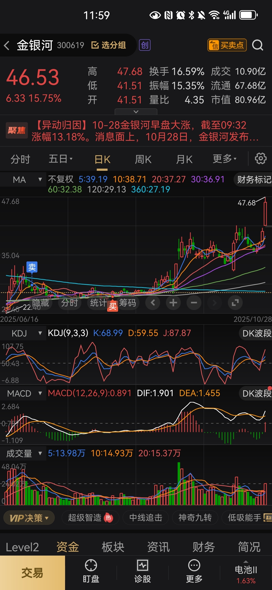 $金银河(SZ300619)$ 希望继续。晒一下单先