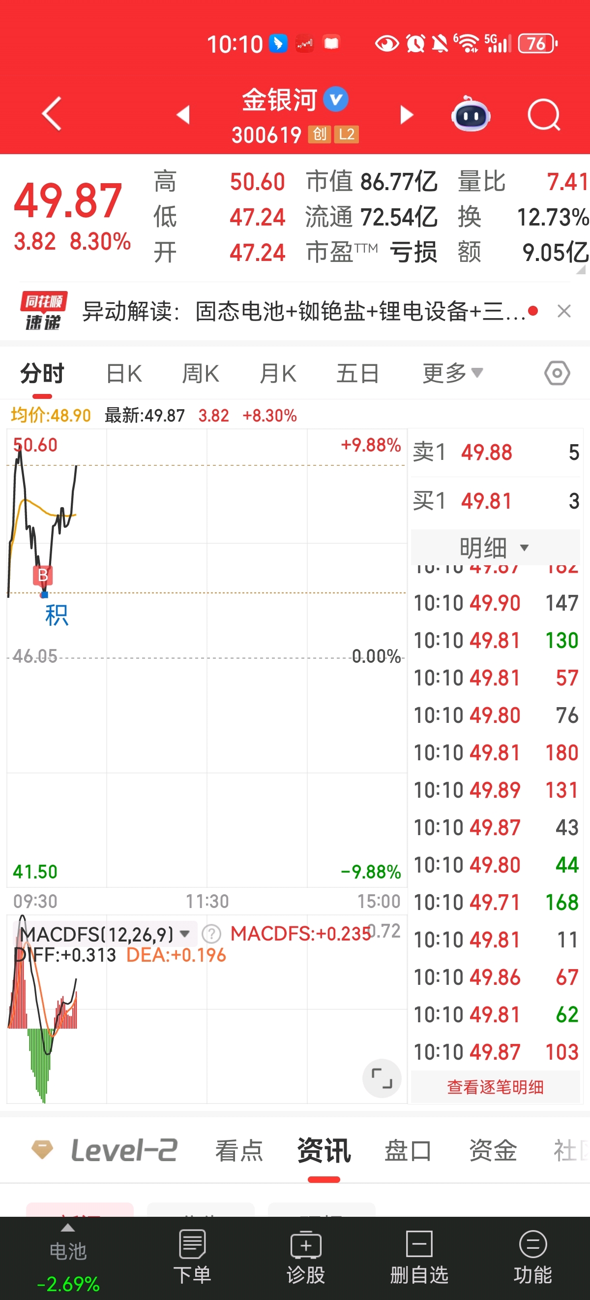 $金银河(SZ300619)$ 你们要感谢我那几百手托底,要不然绿了…