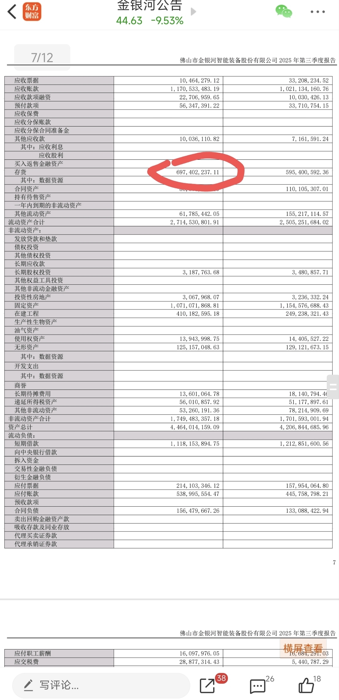 $金银河(SZ300619)$ 看到三季报中存货价值增加比同期增加接近20%,三季度碳酸锂价格上涨,碳酸锂单品销路好,而整体库存增加,说明副产品销售状况不佳