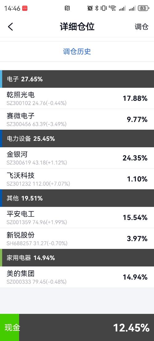 本来不想回复您,觉得跟一个脑子不太好的或者人不太正的说话是一种浪费时间。但很感激您认真看了我自己的记录,也思考了。但就是不会算数。持仓如图,你可以自己算了。平安电工18日+6.18%,金银河-2.98%,乾照光电+2.51%,赛微电子+7.96%,美的集团-0.80%,新锐股份-0.19%,飞沃科技+0.66%。