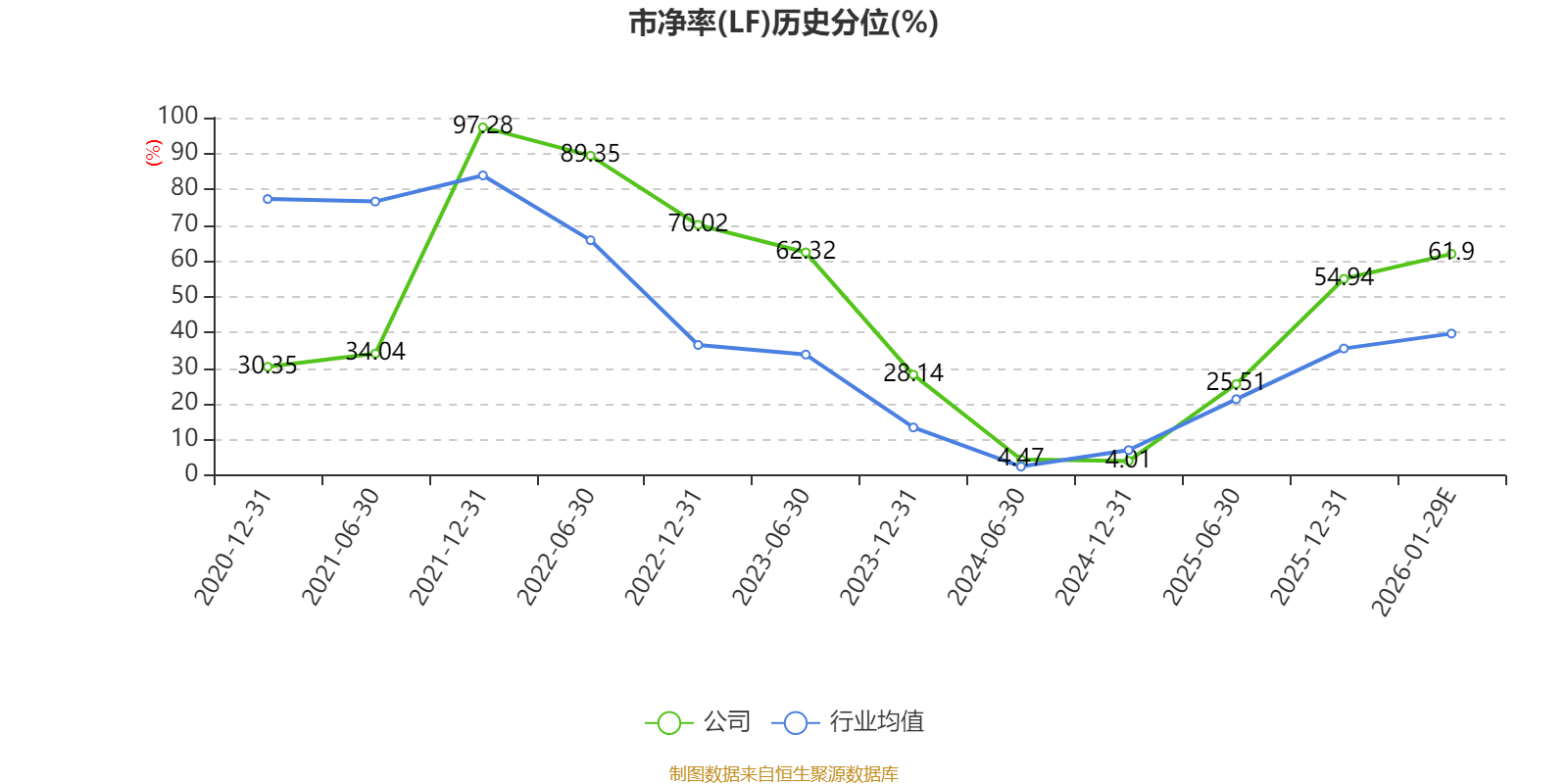 市盈率、市净率为负时,不显示当期分位数,会导致折线图中断。