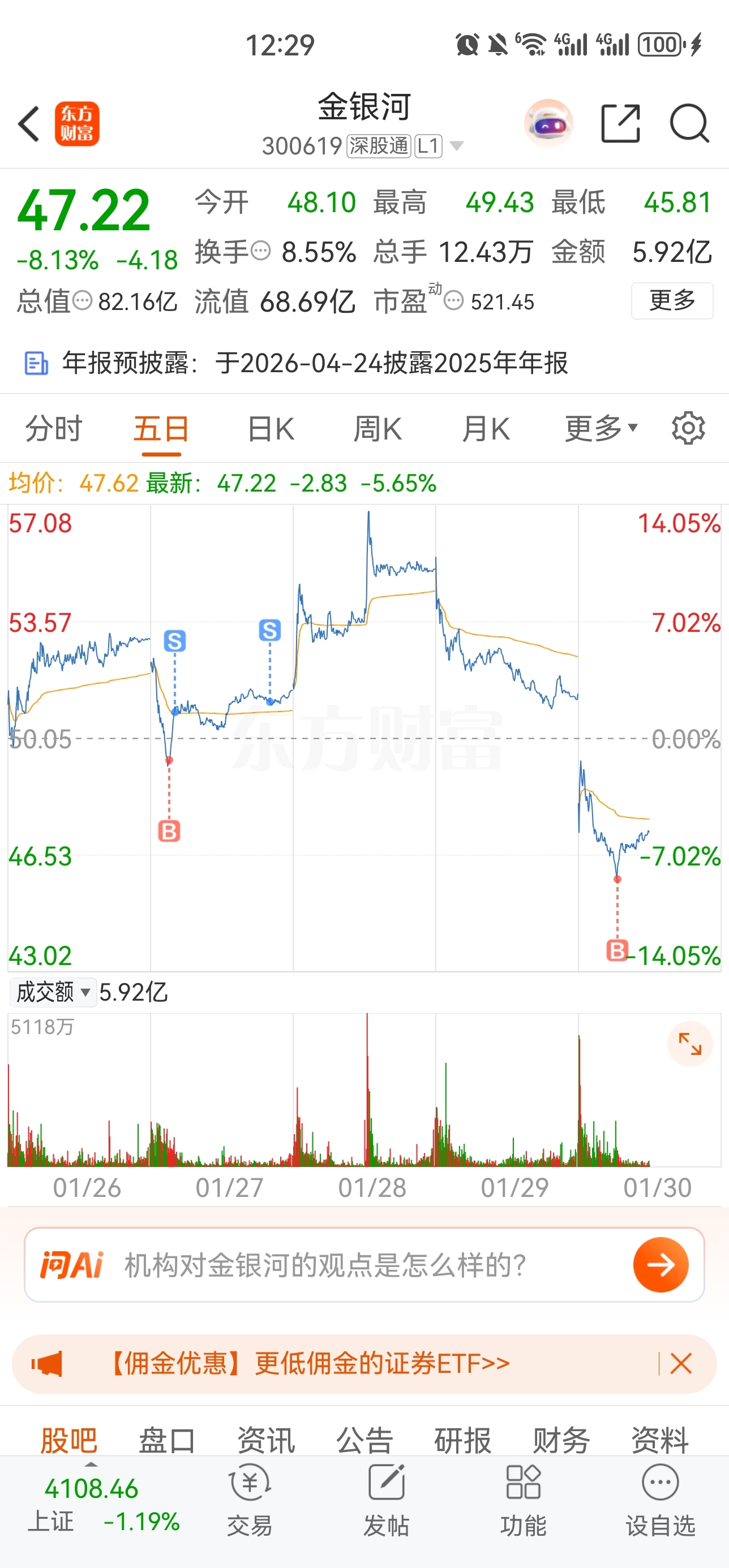 只是暂时不符合东兴证券预测的5000万年利润,如果真符合东兴证券的业绩预期,金银河就不会横盘2个月,早就破76元历史新高了