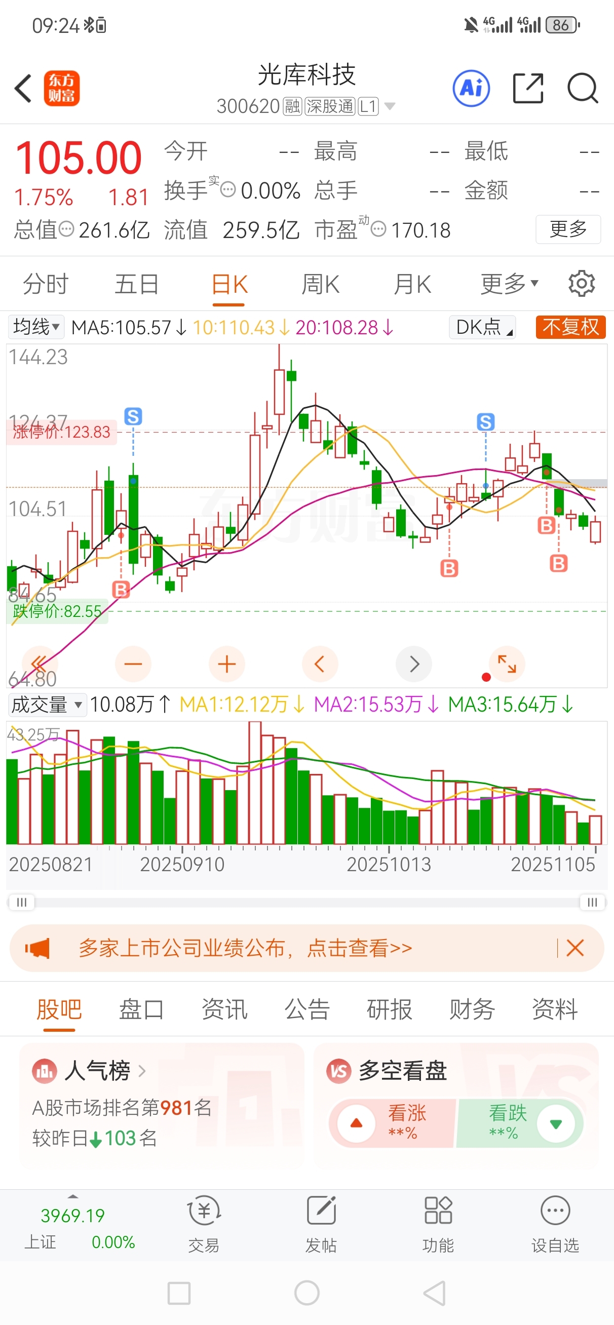 $光库科技(SZ300620)$ 这个票振幅挺大的。适合做t赚。低于95直接进。过105直接做T