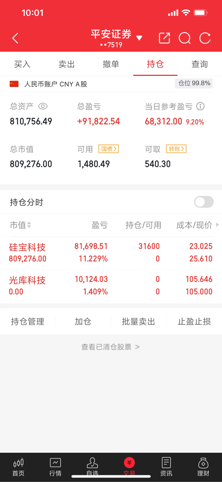 【60W炒股之旅|第10天】今日实盘操作简记:•继续持有:卖出:光库科技买入:硅