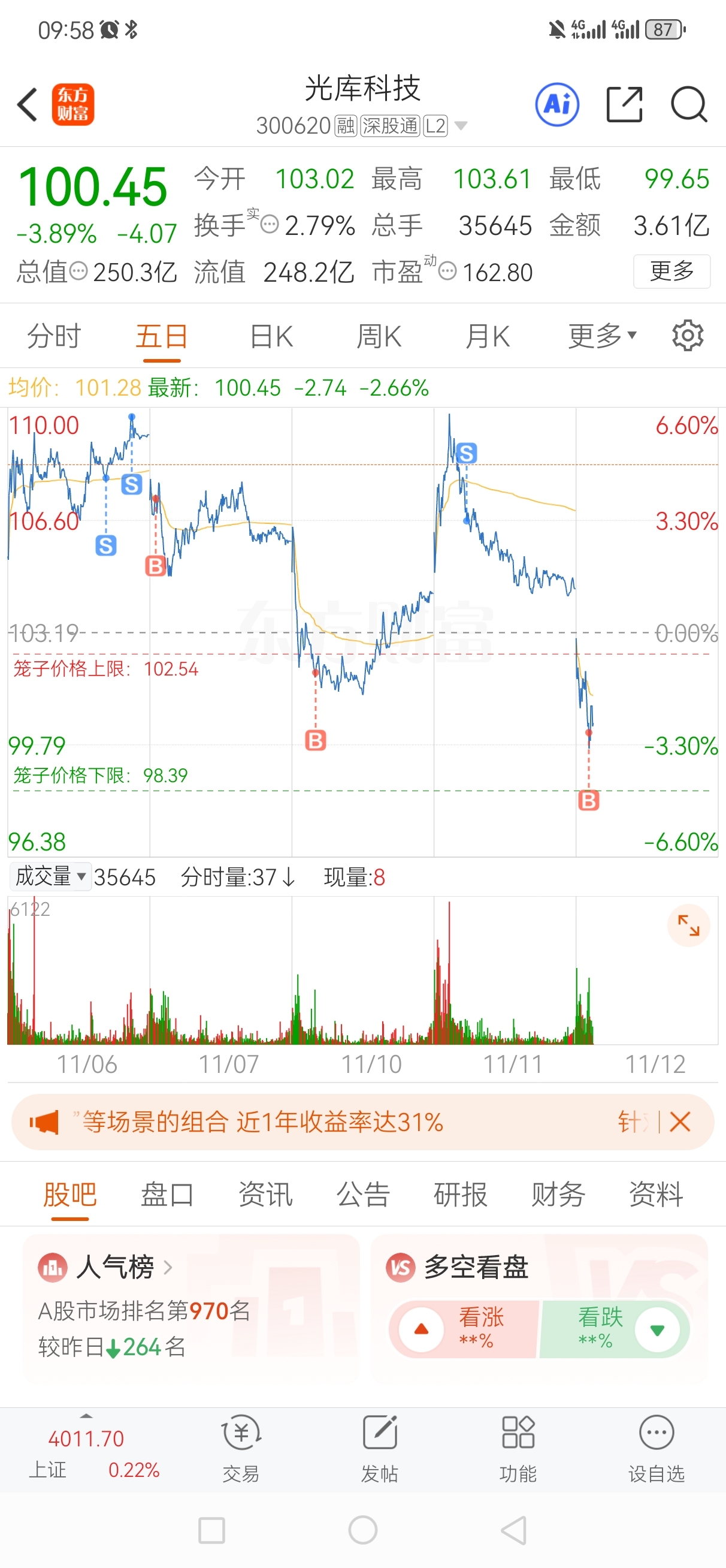 $光库科技(SZ300620)$ 再等一个高位卖出今天的做T就结束了