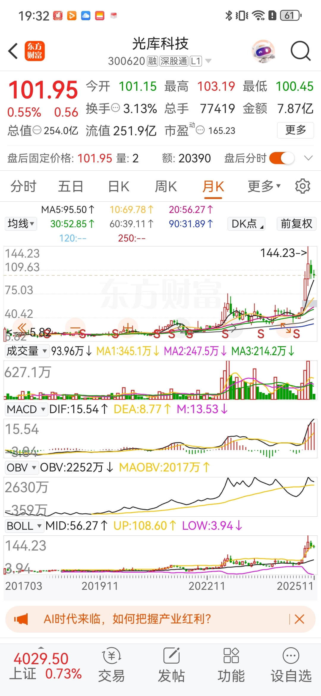 $光库科技(SZ300620)$ 这种拉升后是月线级别的调整!