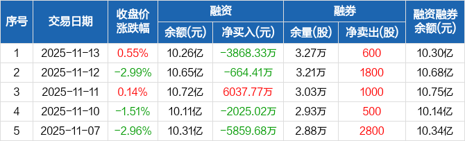 光库科技:融资净偿还3868.33万元,融资余额10.26亿元(11-13)
