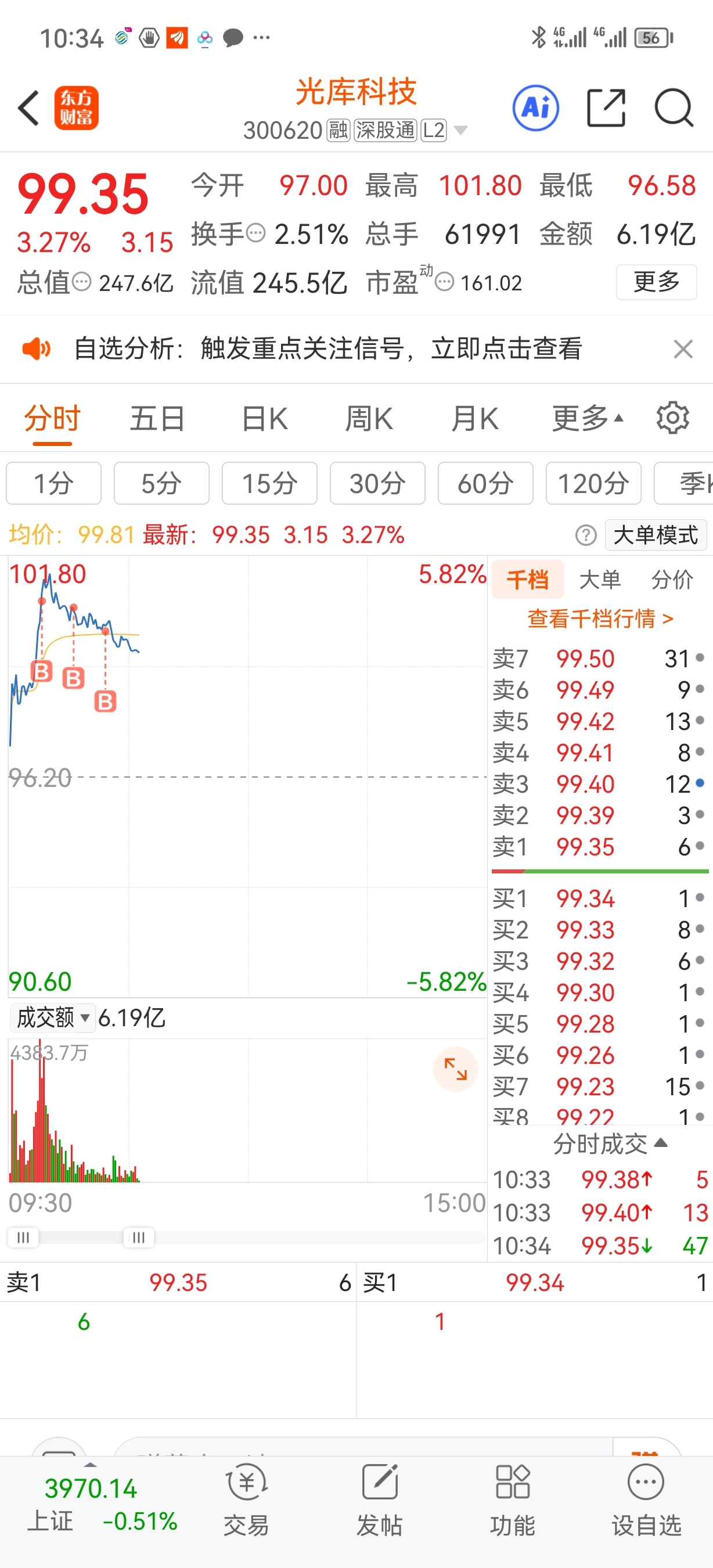 $光库科技(SZ300620)$ 满仓了