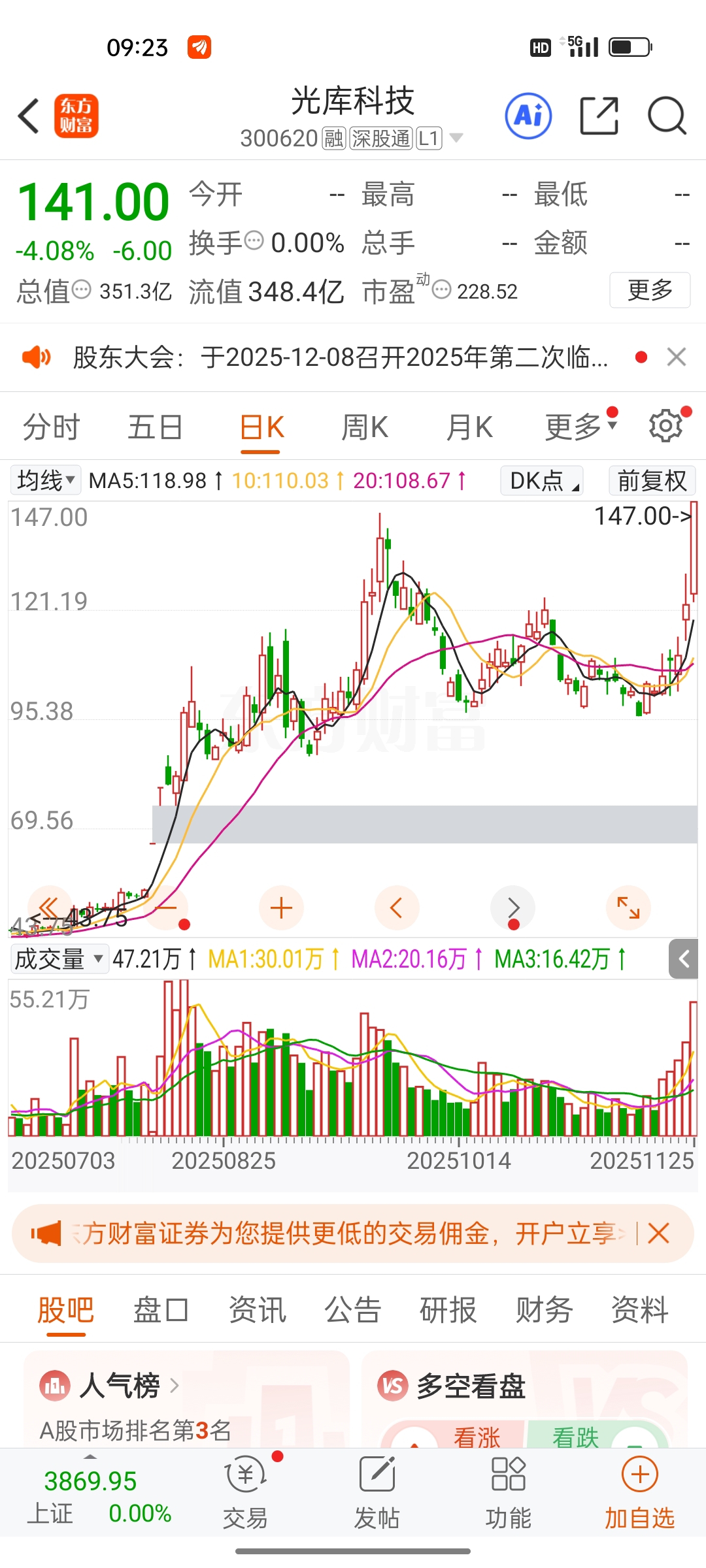 $光库科技(SZ300620)$ 创历史高后震荡,逢低依托均线关注承接机会~