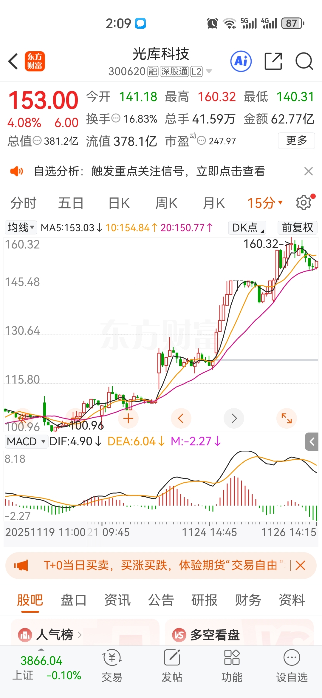 $光库科技(SZ300620)$ 可以出了,短线顶背离了