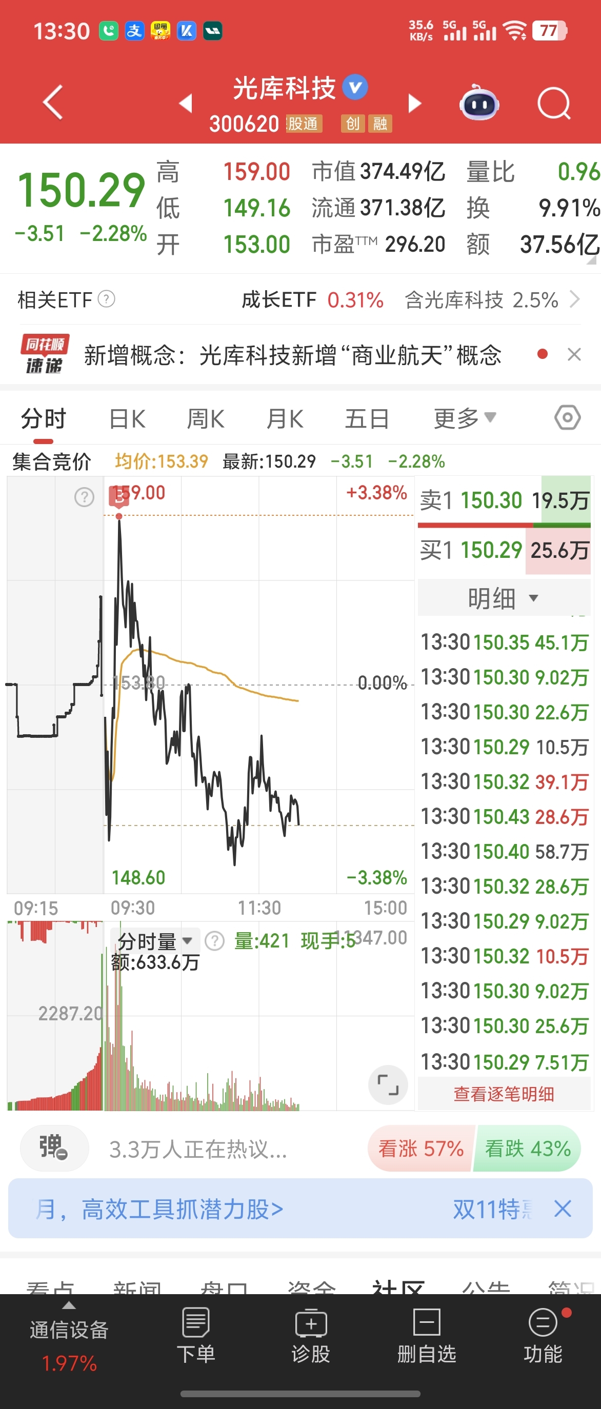 $光库科技(SZ300620)$ 今日最佳买入