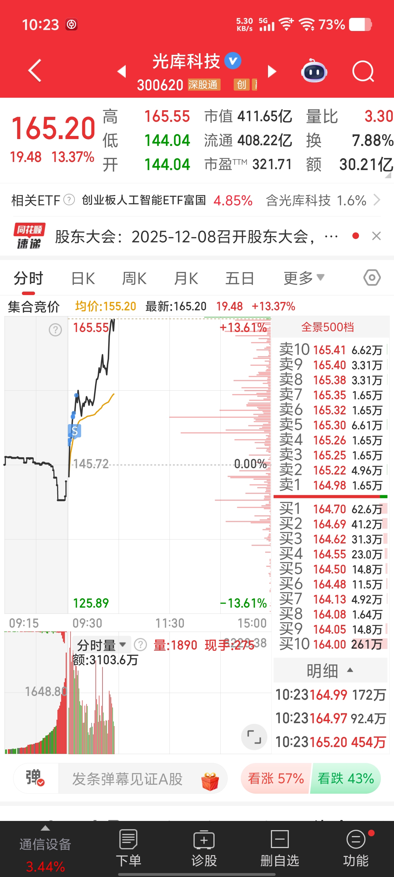 $光库科技(SZ300620)$ 我错了