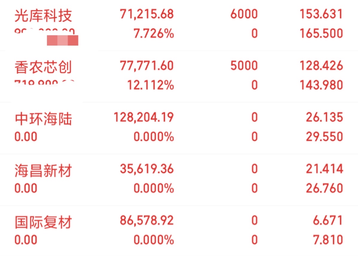 第14天今作:•卖出:国际复材,中环海陆,海昌新材•买入:光库科技,香农芯创
