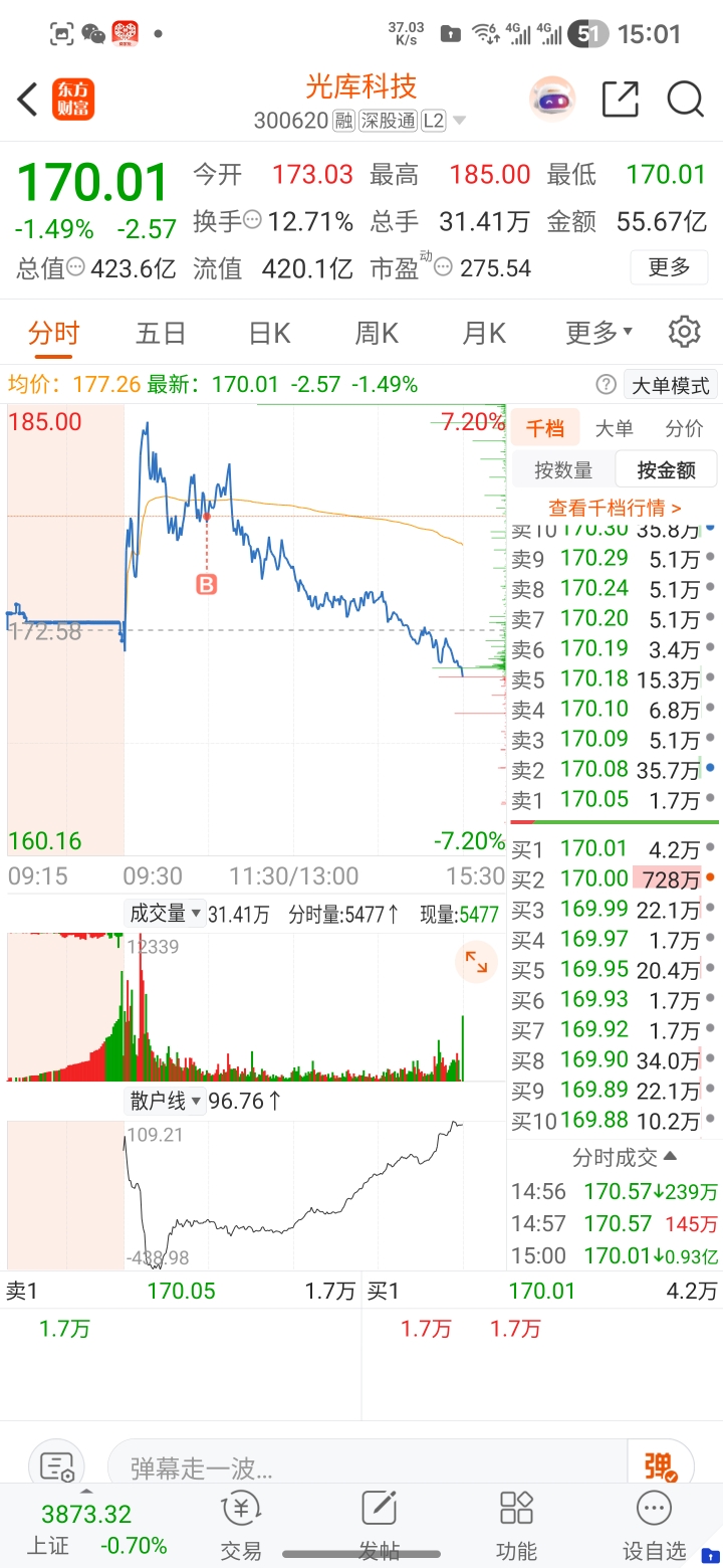 $光库科技(SZ300620)$ 明天不管开盘什么价,直接跑路