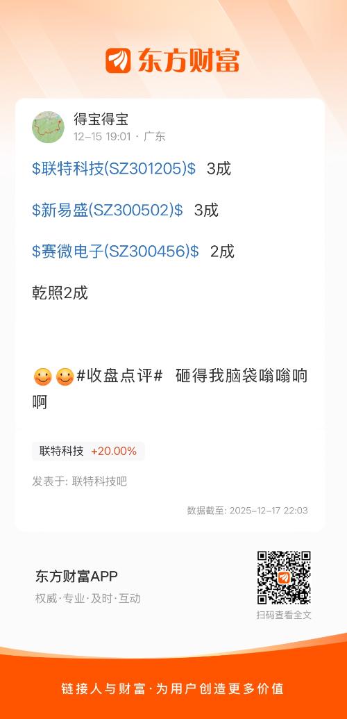 温馨提示: 1.根据《证券法》规定,禁止编造、传播虚假信息或者误导性信息,扰乱证券市场;2.用户在本社区发表的所有资料、言论等仅代表个人观点,与本网站立场无关,不对您构成任何投资建议。用户应基于自己的独立判断,自行决定证券投资并承担相应风险。《东方财富社区管理规定》