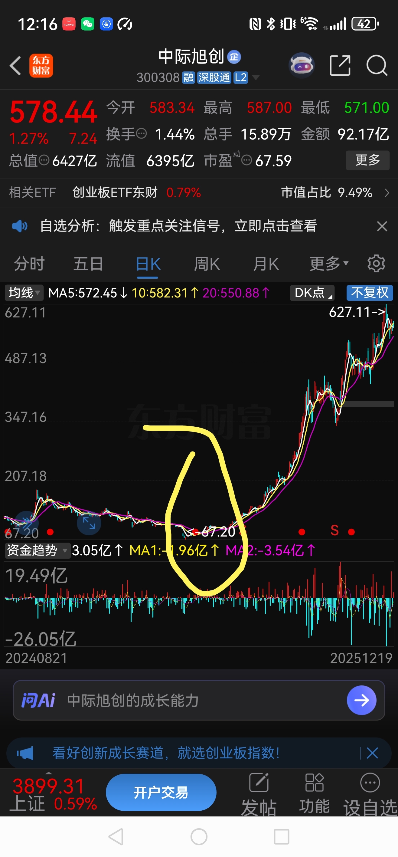 中际旭创今年5月跌破60日线,收盘67.2元,过了半年涨到620元,半年涨9倍