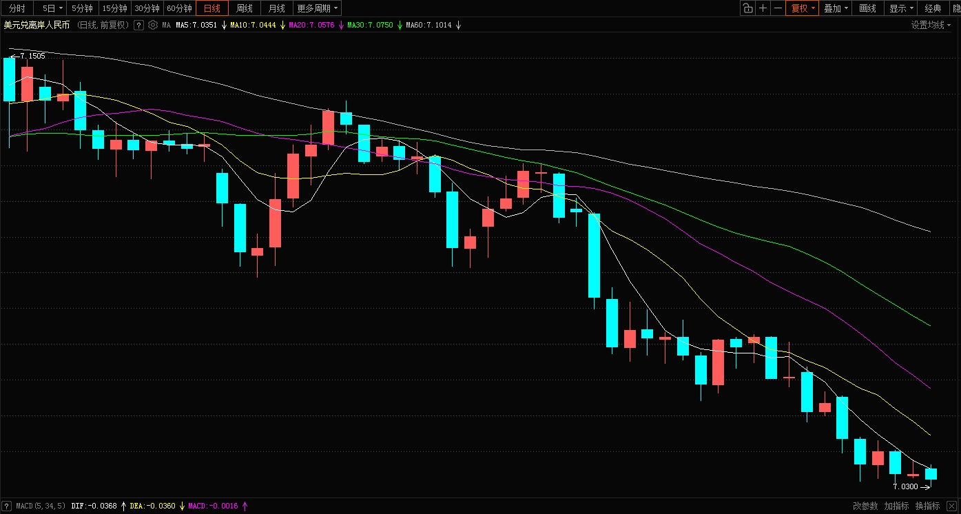 今日美元离岸指数到了7.03,看趋势这几天是美元正流入中国的,这几天大A应该不会