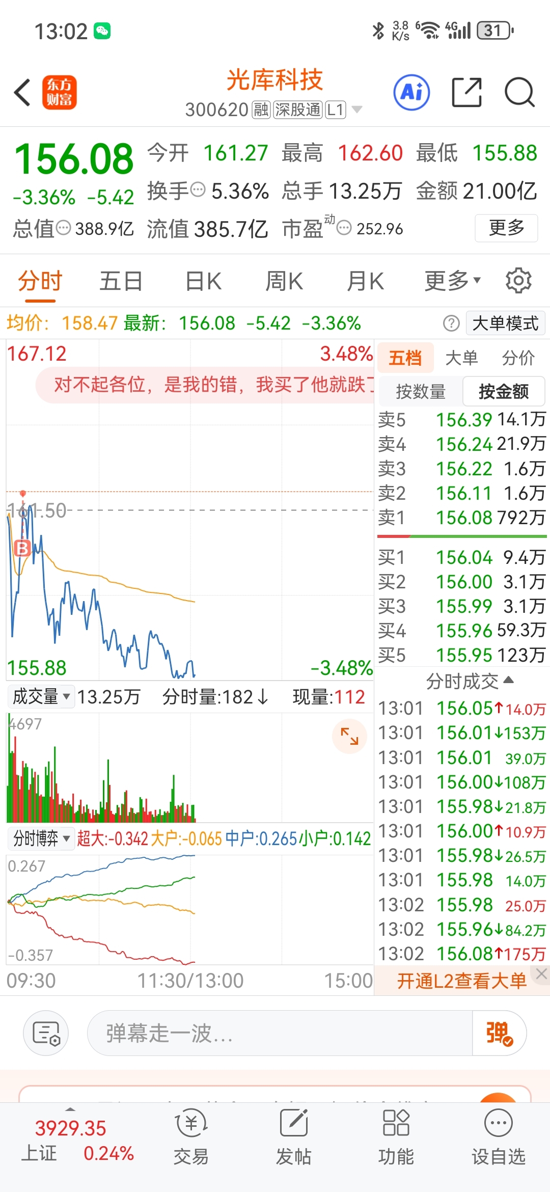 $光库科技(SZ300620)$ 为什么跌?因为我买了