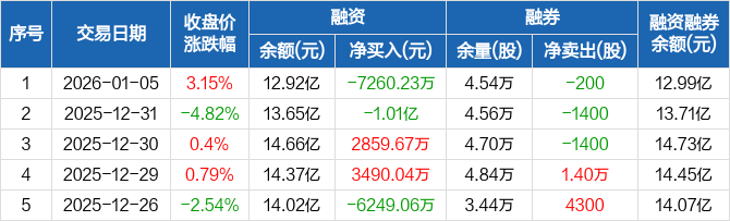 光库科技:融资净偿还7260.23万元,融资余额12.92亿元(01-05)