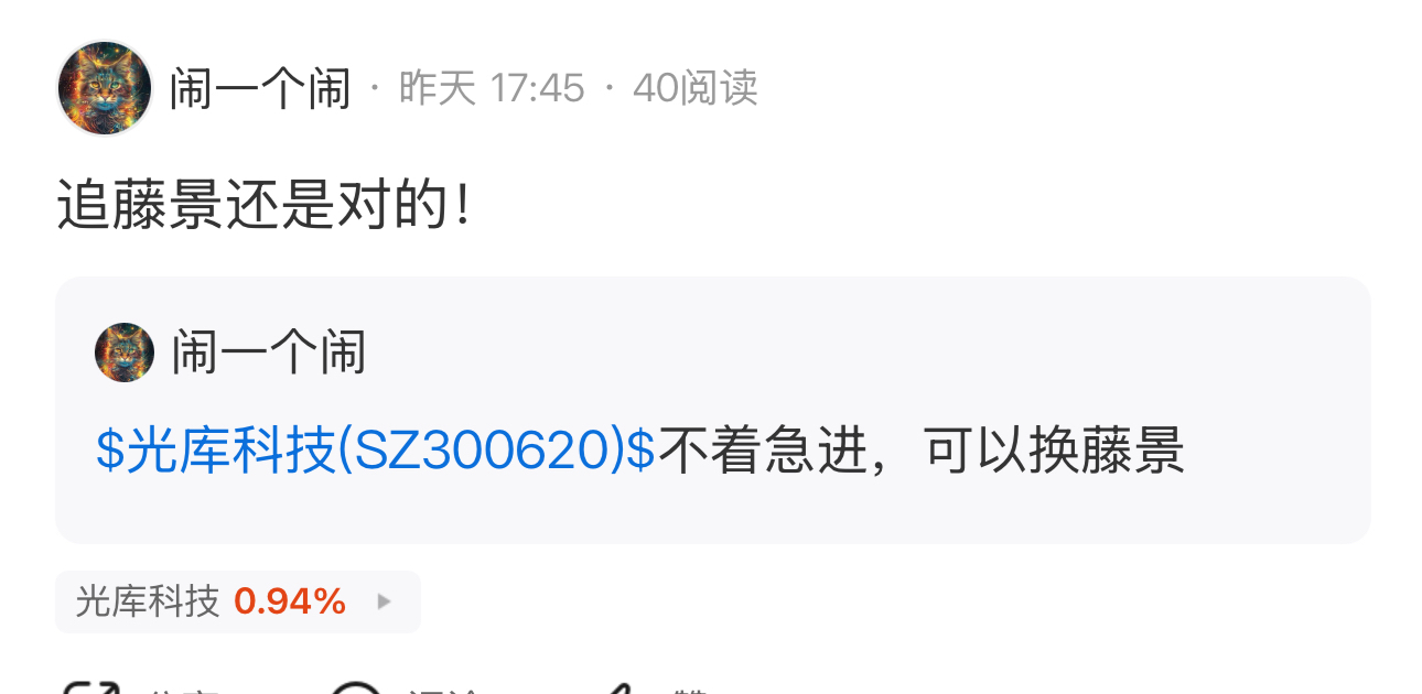 $光库科技(SZ300620)$ 昨天预判追的藤景!果然强太多!