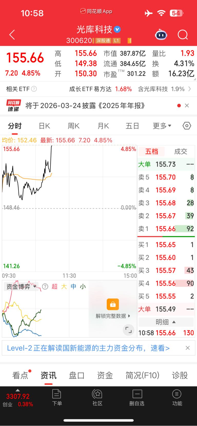 昨天出的$光库科技(SZ300620)$ 又拉升了