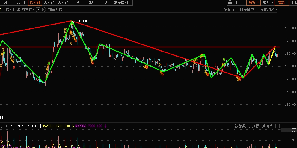 今天高点过了165,也就是这波下跌的中线位,说明这波调整已经结束,只要在这周内收