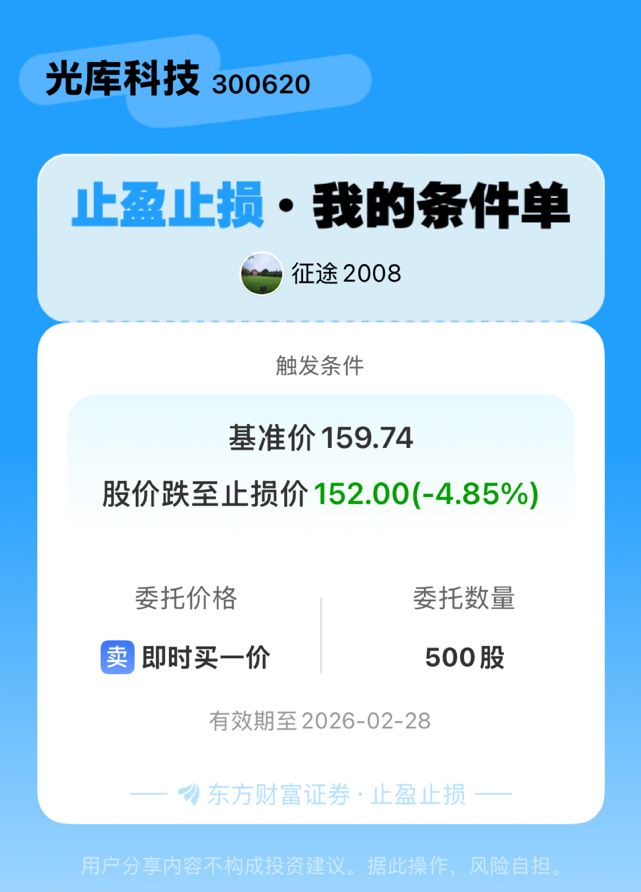 #条件单交流# #止盈止损晒单# 一位股神设置了一个止盈止损条件单,接下来就是见证奇迹的时刻~$光库科技(SZ300620)$