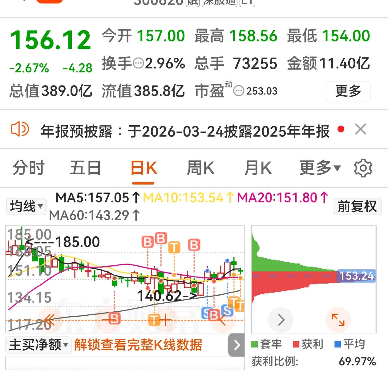 $光库科技(SZ300620)$ 今天又T了一次154-156=-2