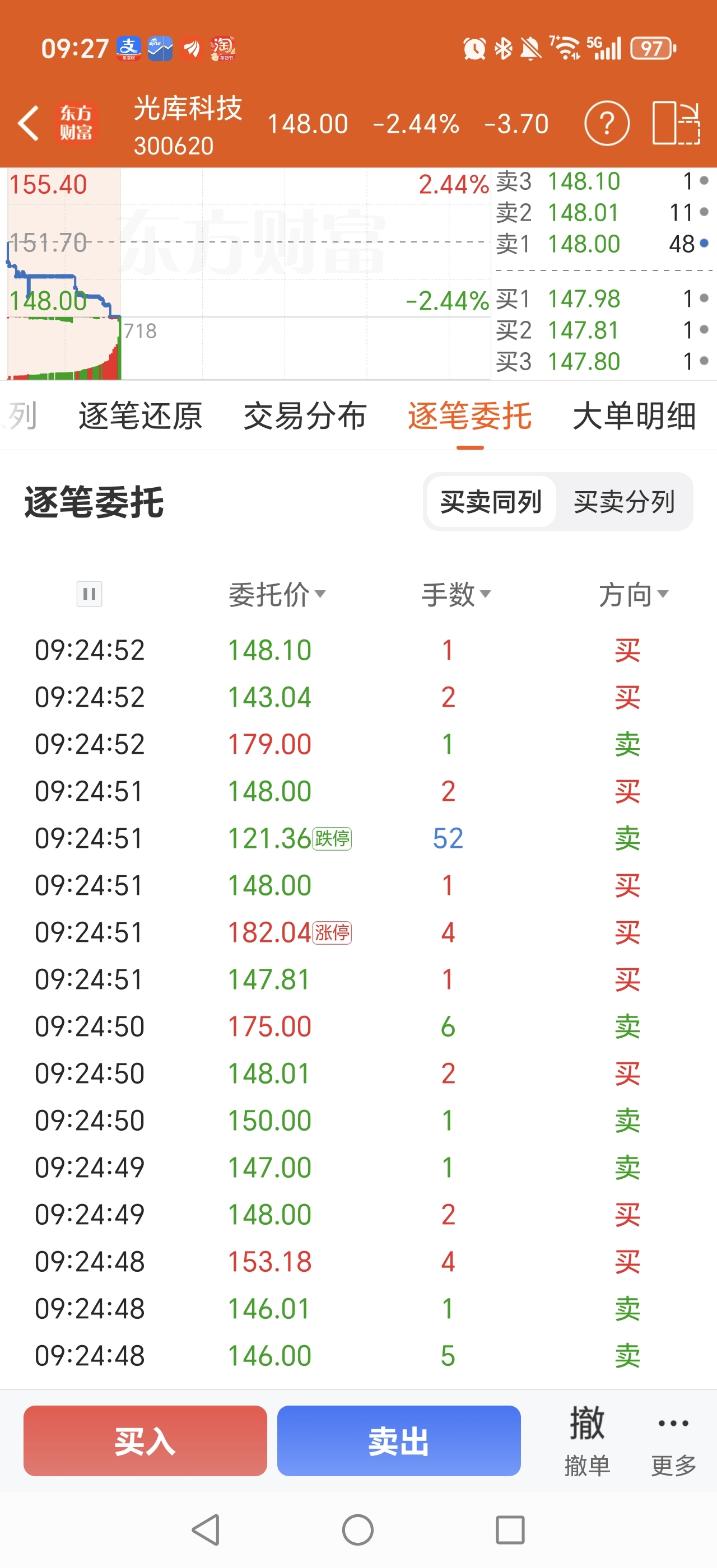 $光库科技(SZ300620)$ 集合竞价跌停委托卖出的还不少人呢