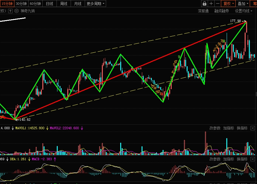 暂时会在这个上涨通道呈45度角∠震荡上行。