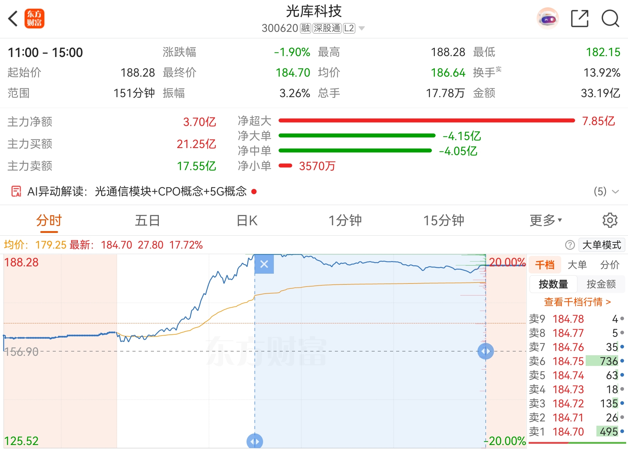 $光库科技(SZ300620)$ 涨停板之后的区间统计,大资金一直在进,我选择与主力共舞,拿住了