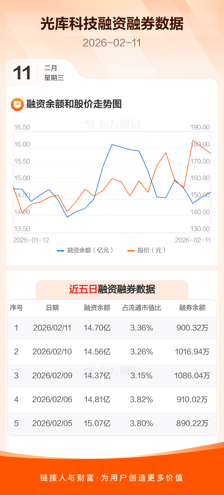交易所最新数据显示,光库科技于2026年2月11日获融资买入2.48亿元,融资偿还2.34亿元,当日融资净买入1402.68万元。目前,该股融资余额14.70亿,占流通市值比例为3.36%。