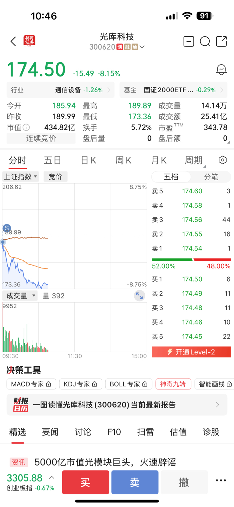 $光库科技(SZ300620)$ 目前来看是溜了好,收盘还不确定