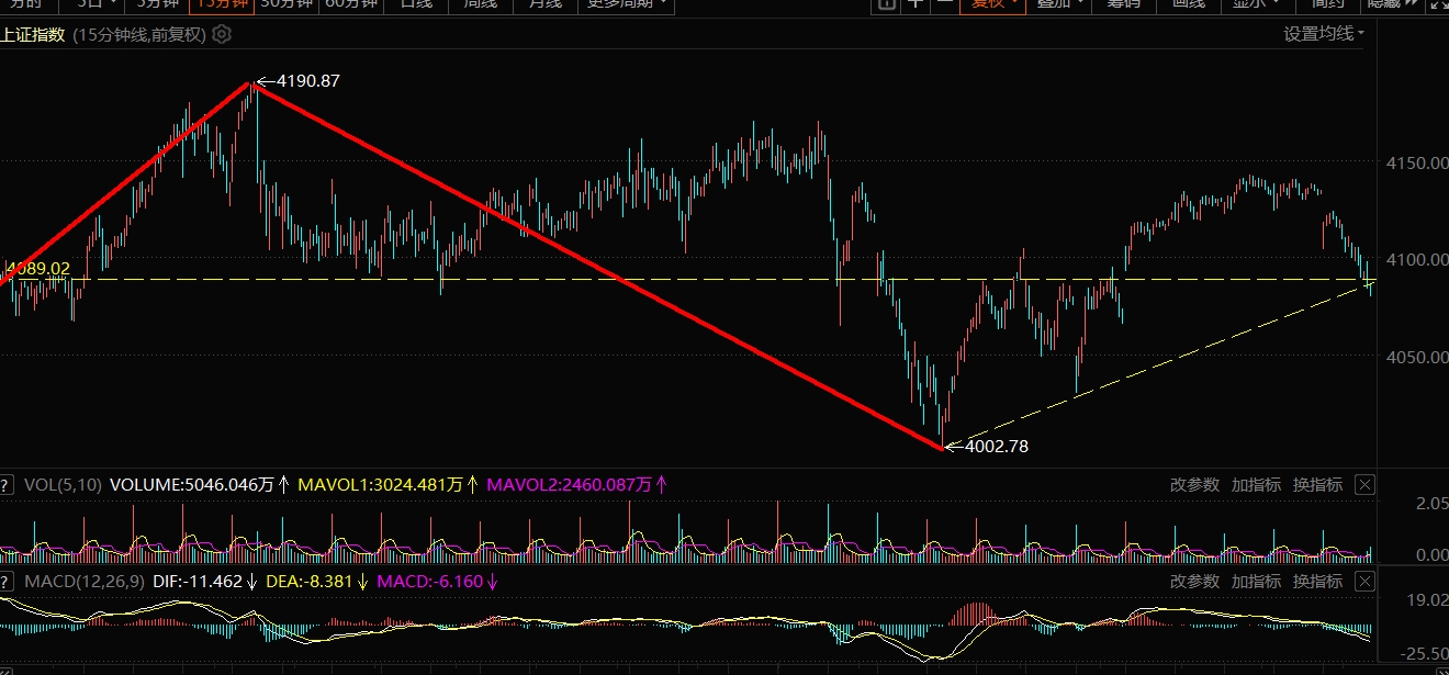 另外这股跟上证同频,看看大盘目前是在4190与4002之间的颈线位1/2处,刚好