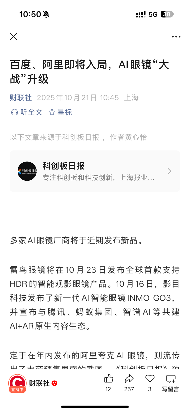 $博士眼镜(SZ300622)$ meta眼镜的成功已经证明了,最佳销售策略是以线下定制为主,因为眼镜与手机的最大区别就是,本身具有很强的实用功能。在AI眼镜大战的时代,博士作为拥有线下门店和智能眼镜销售渠道的企业,具有得天独厚的优势。