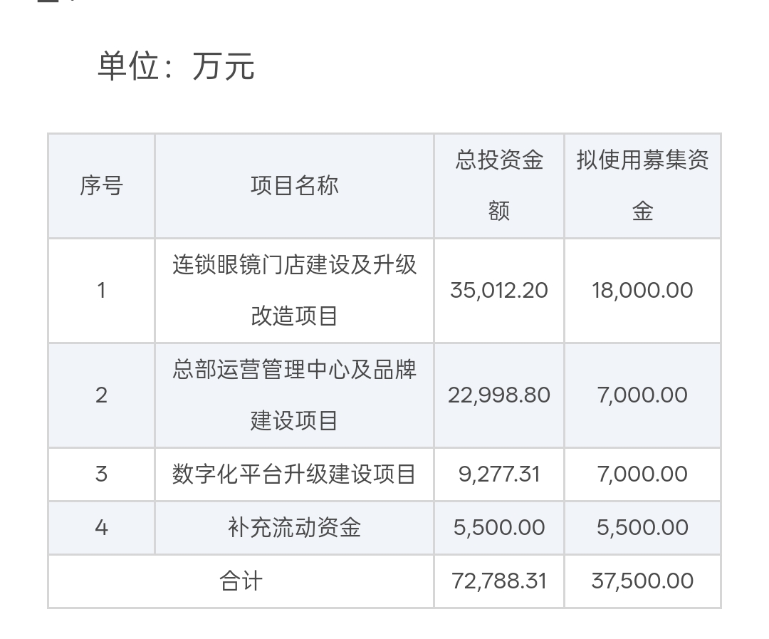 据透露,博士眼镜本次拟发行可转换公司债券募集资金总额不超过人民币37,500.00万元,每张面值为人民币100.00元,期限为自发行之日起六年。扣除发行费用后的募集资金净额拟用于连锁眼镜门店建设及升级改造项目、总部运营管理中心及品牌建设项目、数字化平台升级建设项目、补充流动资金。