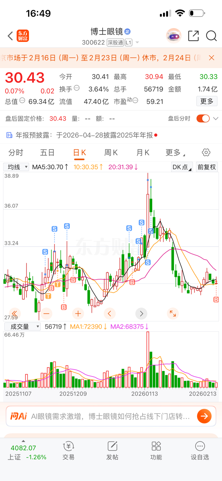 $博士眼镜(SZ300622)$ 开门红 靠你了