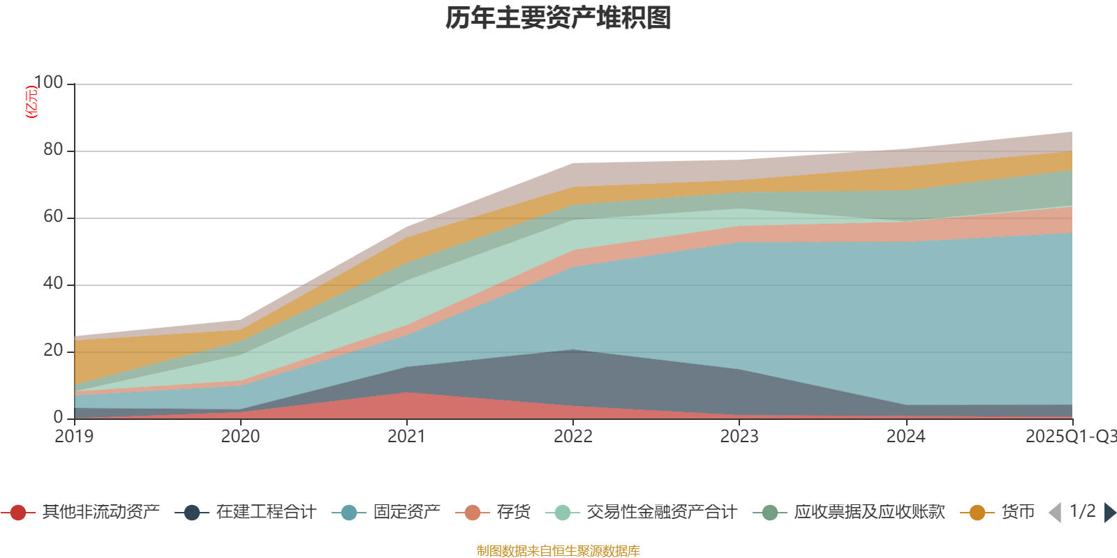 资产重大变化方面,截至2025年三季度末,公司货币资金较上年末减少20.72%,占公司总资产比重下降2.24个百分点;存货较上年末增加30.39%,占公司总资产比重上升1.69个百分点;应收票据及应收账款较上年末增加14.67%,占公司总资产比重上升0.9个百分点;固定资产较上年末增加5.49%,占公司总资产比重下降0.47个百分点。