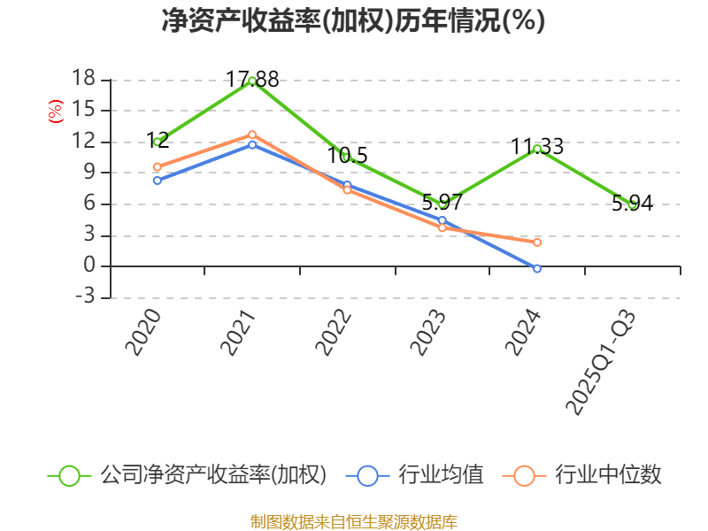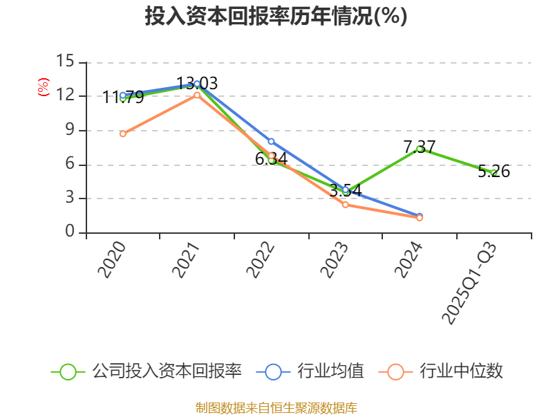盈利能力方面, 2025年前三季度公司加权平均净资产收益率为5.94%,同比下降2.56个百分点。公司2025年前三季度投入资本回报率为5.26%,较上年同期下降0.3个百分点。