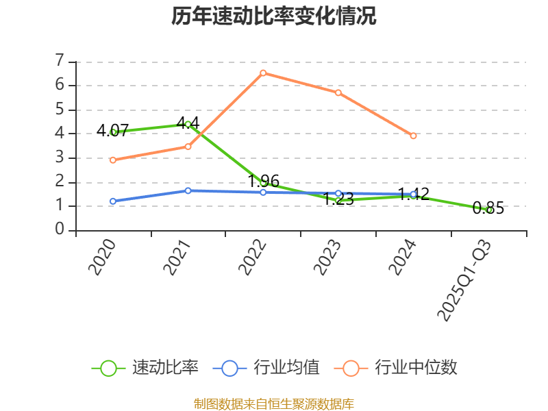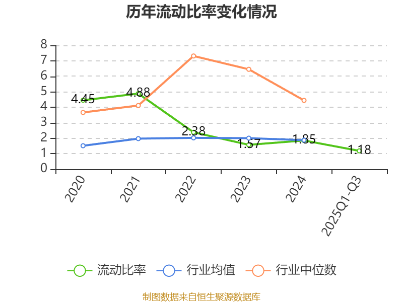 2025年前三季度,公司流动比率为1.18,速动比率为0.85。