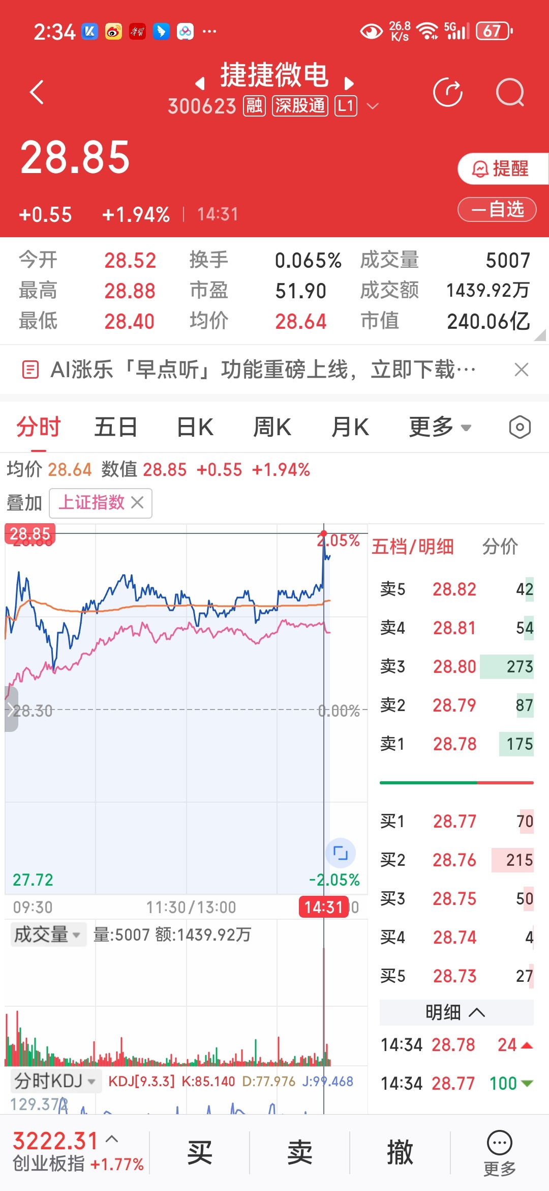 $捷捷微电(SZ300623)$ 盘中哪位大佬进了5000手