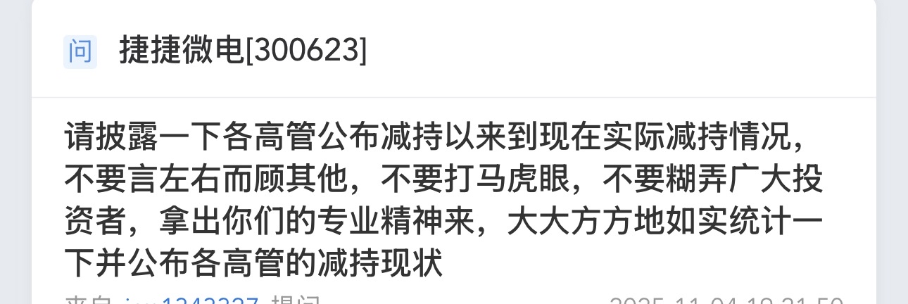$捷捷微电(SZ300623)$ 互动平台也开始不回沓消费者的问题了,开始装聋作哑了