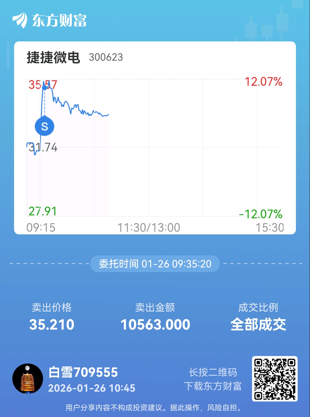 温馨提示: 1.根据《证券法》规定,禁止编造、传播虚假信息或者误导性信息,扰乱证券市场;2.用户在本社区发表的所有资料、言论等仅代表个人观点,与本网站立场无关,不对您构成任何投资建议。用户应基于自己的独立判断,自行决定证券投资并承担相应风险。《东方财富社区管理规定》