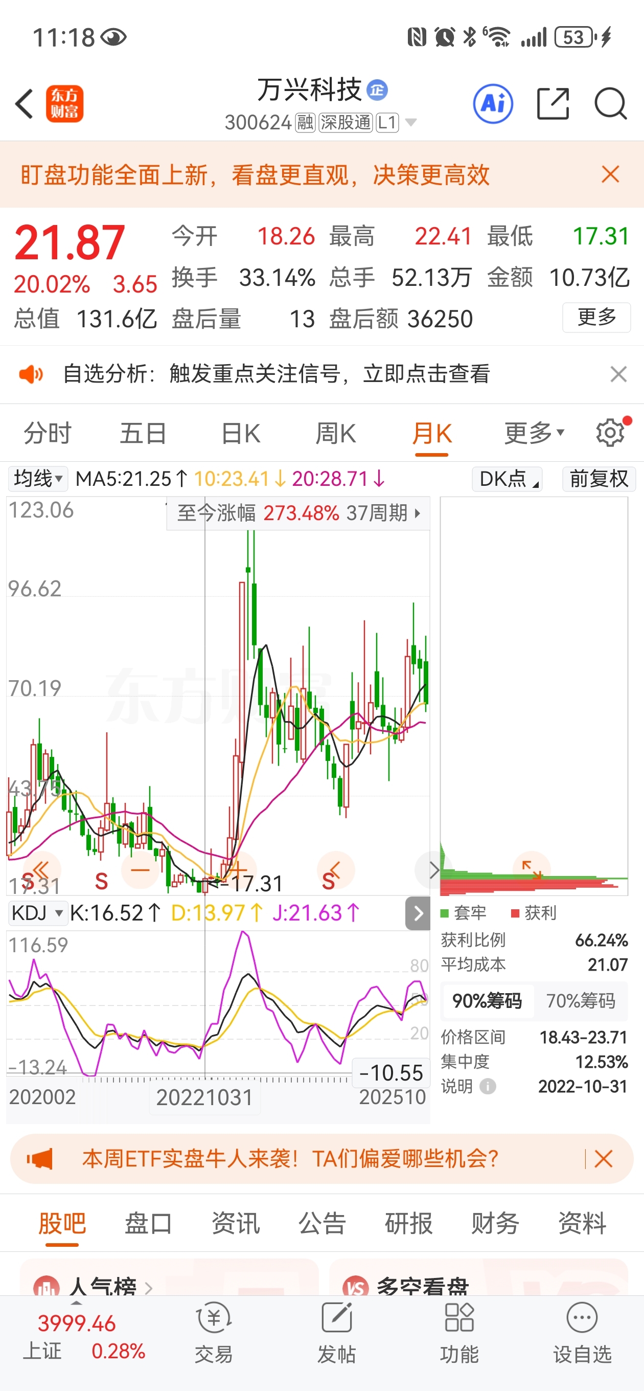 $万兴科技(SZ300624)$ 有人说目前的股价是底部,我就笑笑不说话,会看的人给看看底部在哪