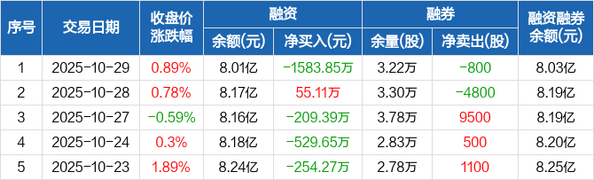 万兴科技:融资净偿还1583.85万元,融资余额8.01亿元(10-29)