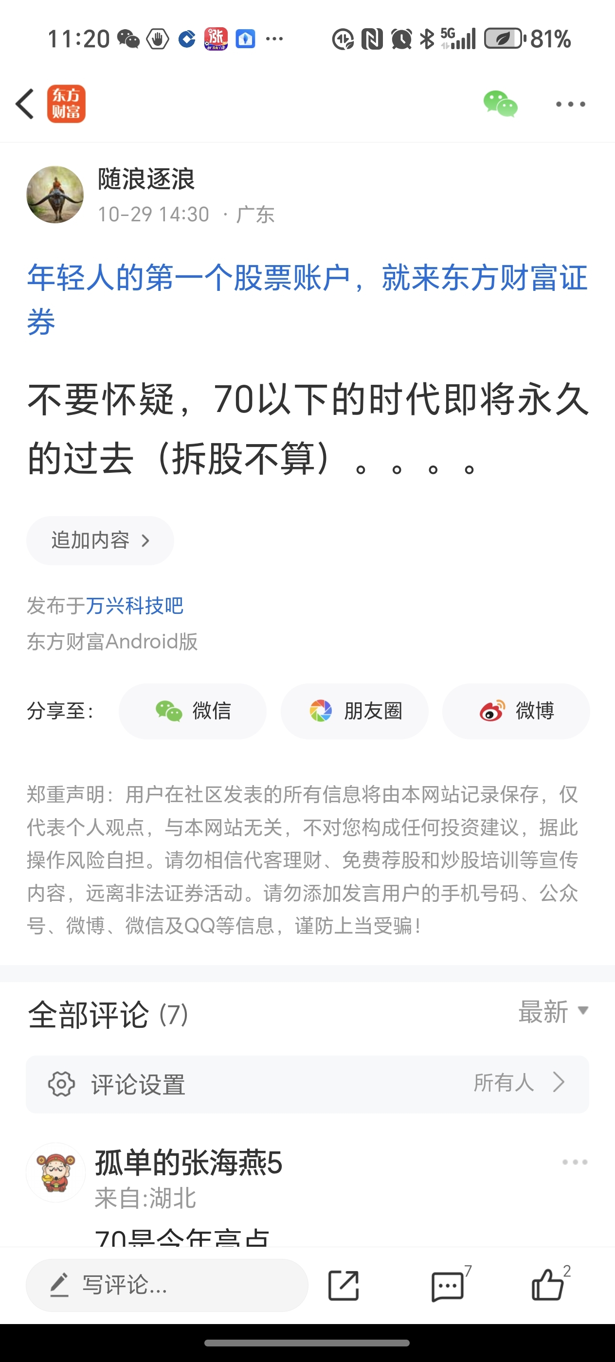 温馨提示: 1.根据《证券法》规定,禁止编造、传播虚假信息或者误导性信息,扰乱证券市场;2.用户在本社区发表的所有资料、言论等仅代表个人观点,与本网站立场无关,不对您构成任何投资建议。用户应基于自己的独立判断,自行决定证券投资并承担相应风险。《东方财富社区管理规定》