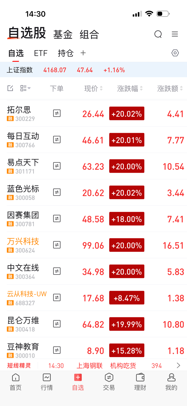 $万兴科技(SZ300624)$ 自选股全疯了,没见过这情况,买了后排,好可惜。