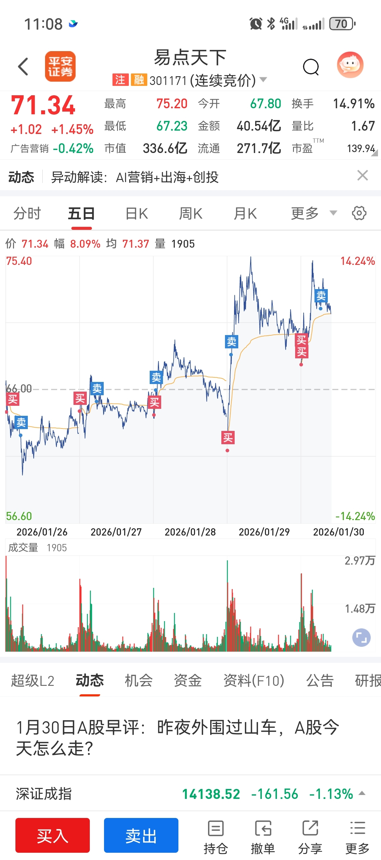 跑了跑了,不赌周日的红包大战了,就当利好前一天出货吧,蓝色和易点底仓都留着。万兴