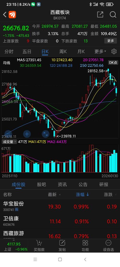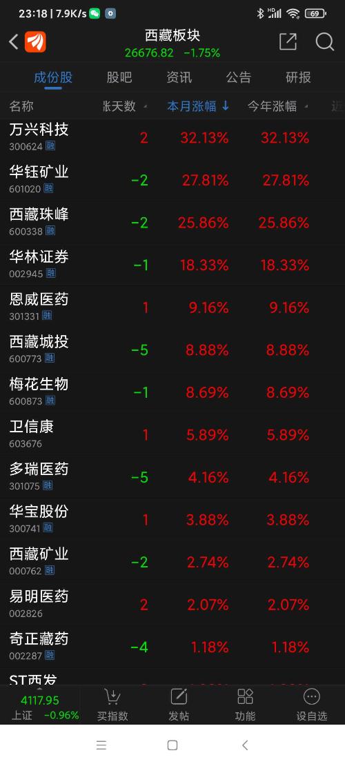 西藏板块26年元月涨幅5.69%,万兴科技名列西藏板块(共有22个股票)涨幅第一