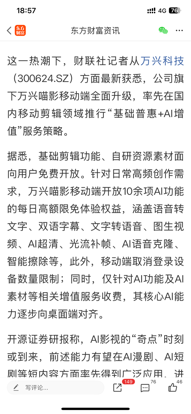 $万兴科技(SZ300624)$ 字节即梦seedance2.0对于万兴是真正大利好,明天来个涨停吧